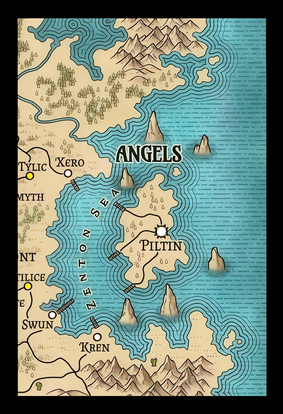 The angels have the fewest cities, but they have the largest population on Affer. Each city is worthy of being a capital in its own right, with Piltin being the largest city on the planet. Since Piltin is located on Zenton Island, and the others are on the mainland, they have a substantial number of boats. In fact, they own every boat on Affer. Each ship is built to survive the brutal Zenton Sea, while also being capable of transporting large amounts of goods. They also have a vast navy. The ships that are outfitted for war are completely constructed out of metal and have dozens of cannons built into them.